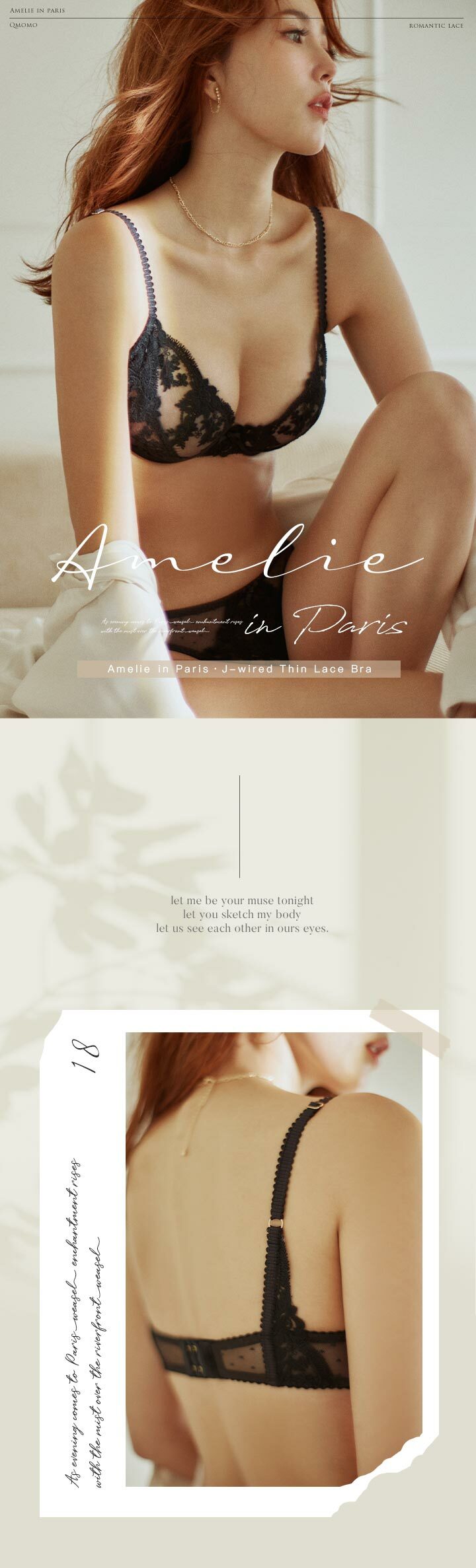 【Amelie In Paris】J-wired Thin Lace Bra (Black)
