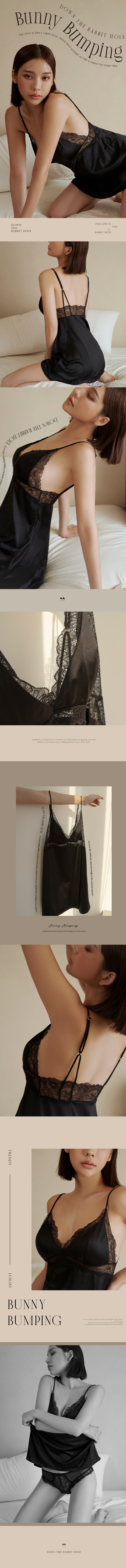 【Bunny Bumping】Satin Deep V Padded Nightgown (Silky Black)