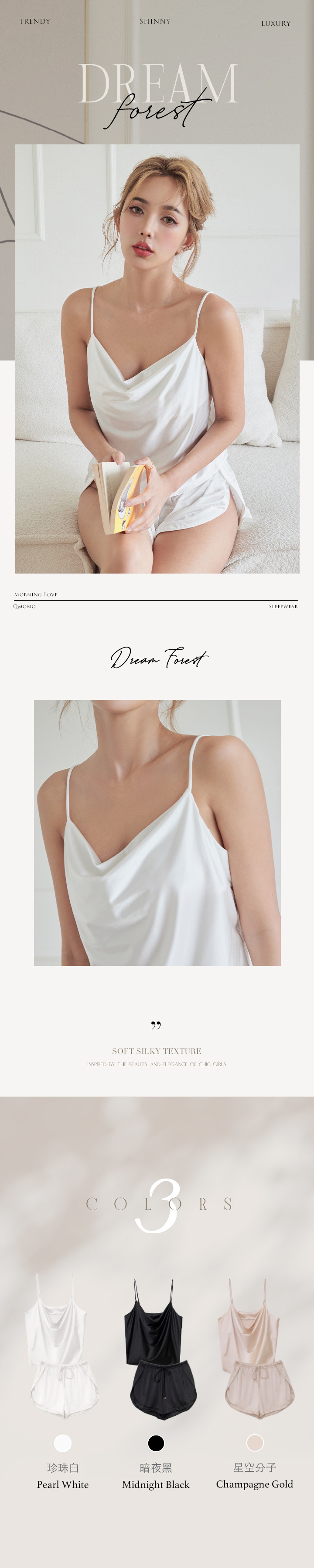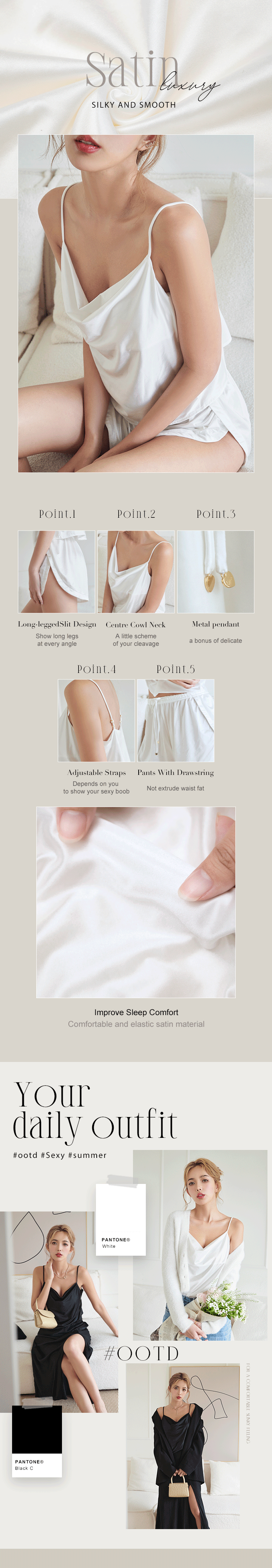 【Dream Forest】Cowl Neck Satin Pyjamas Top (Pearl White)