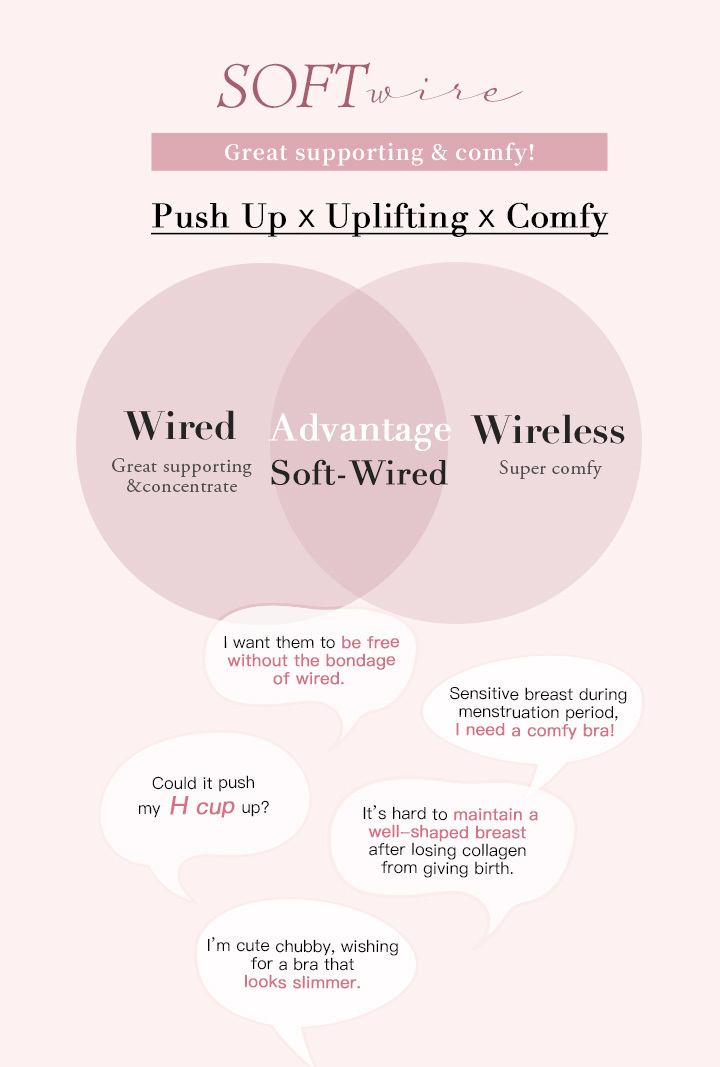 The soft and comfy soft-wired mould cup is decompression and comfortable.