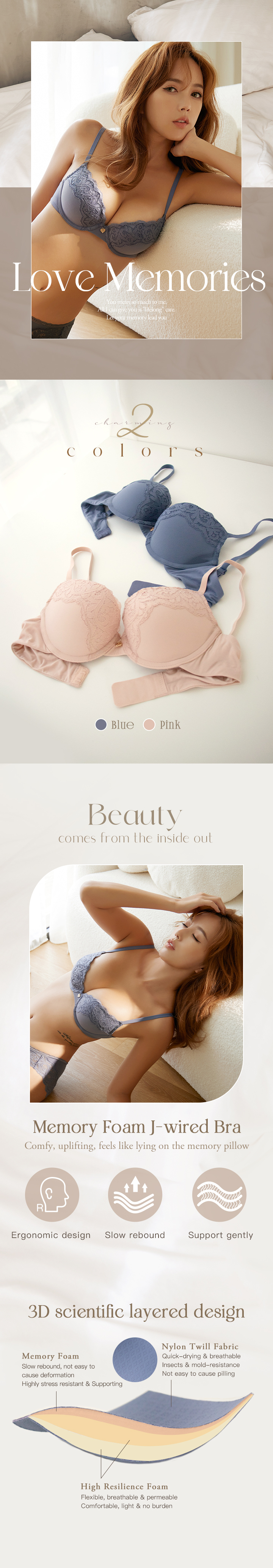 【Love Memories】Lace Memory Foam J-wired Bra (Lovely Blue)