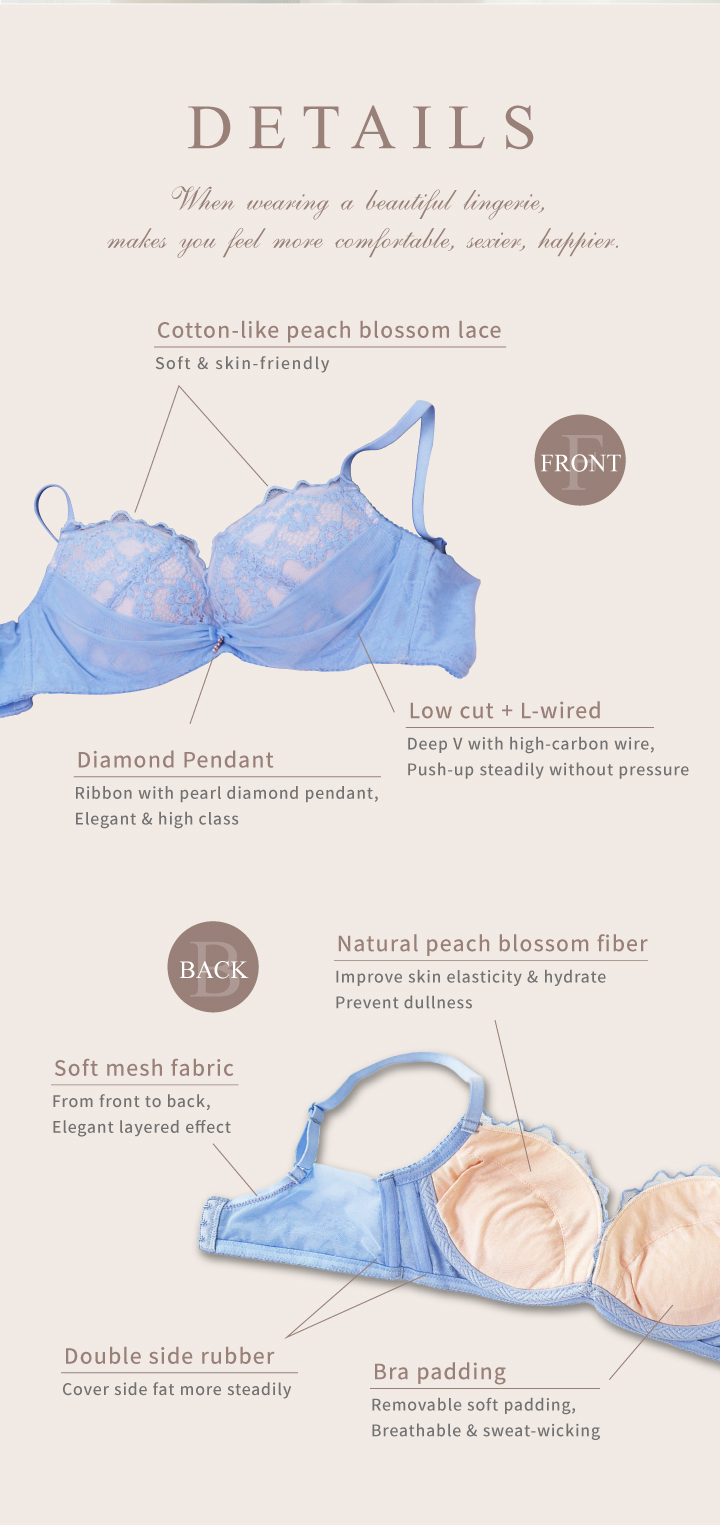 【Lovey Dovey​】Peach Blossom Fiber L-wired Bra​ (Sparkling Blue)