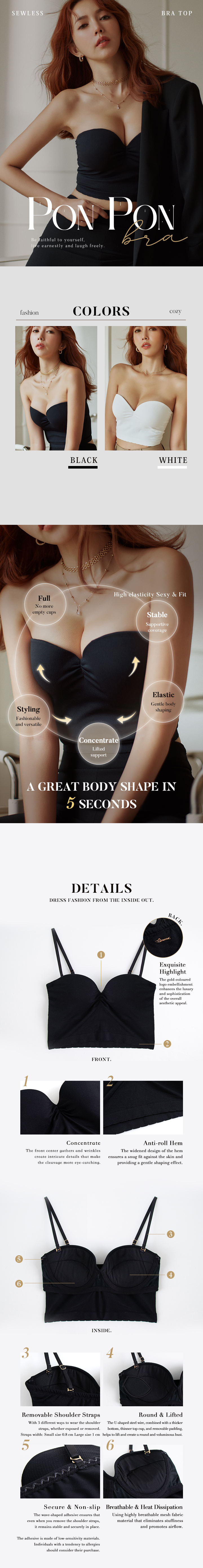 【Pon Pon Bra】Sewless Bra Top (Black)