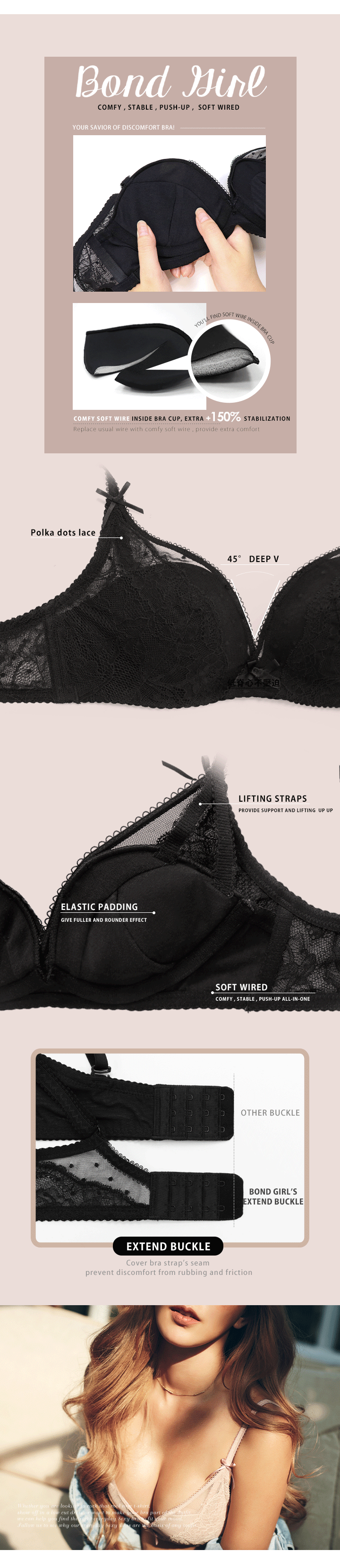 Try Qmomo Bond Girl, Soft wired polka dots design bra
