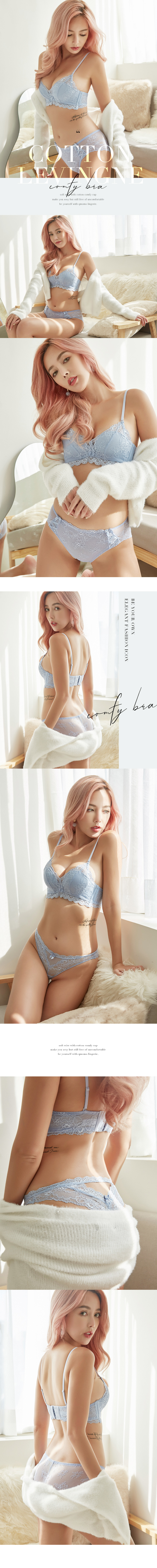Qmomo【Cotton Levingne】Soft-wired Bra (Sky Blue)
