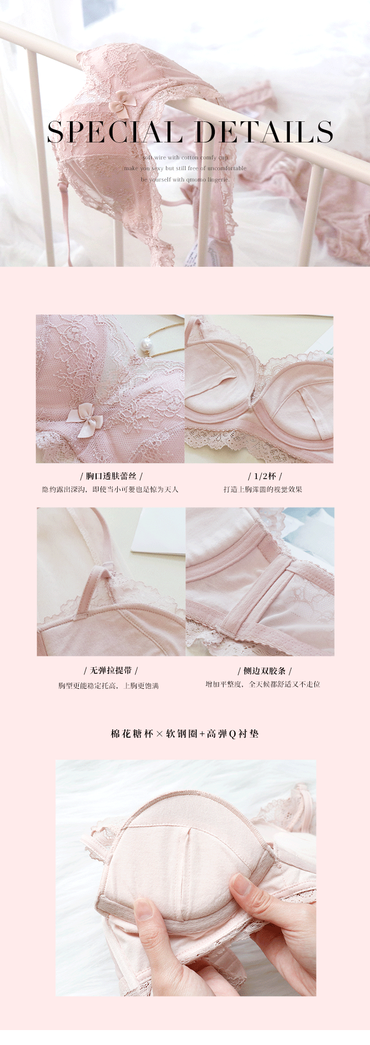 Qmomo【Cotton Levingne】Soft-wired Bra (Soft Pink)