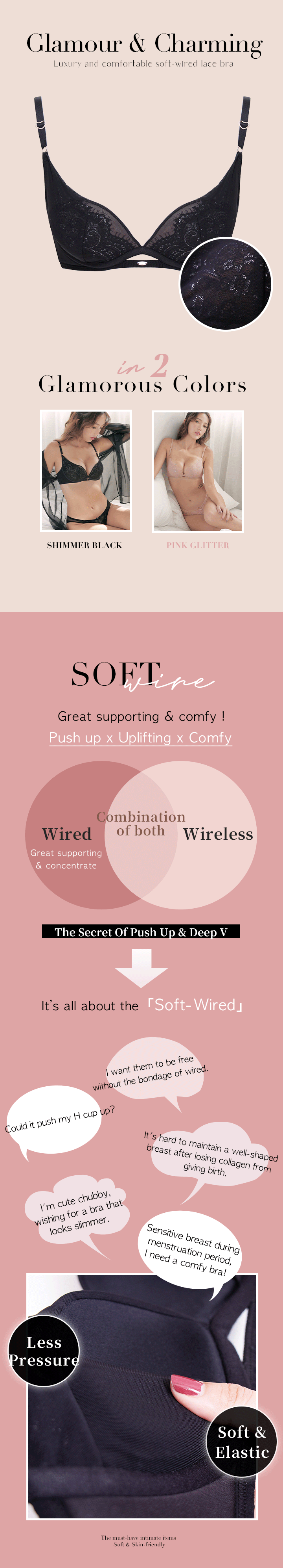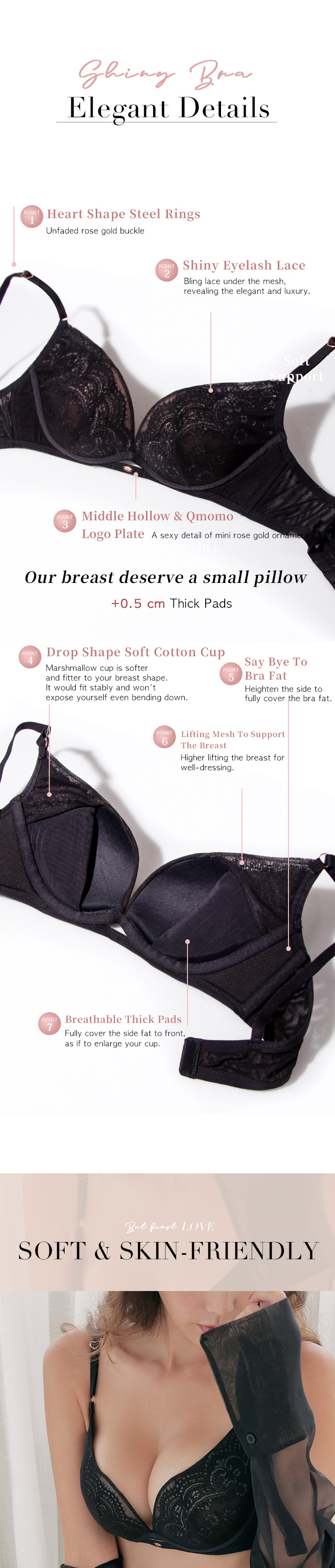 Qmomo【Shiny Femme Fatale】Soft-wired Bra (Shimmer Black)