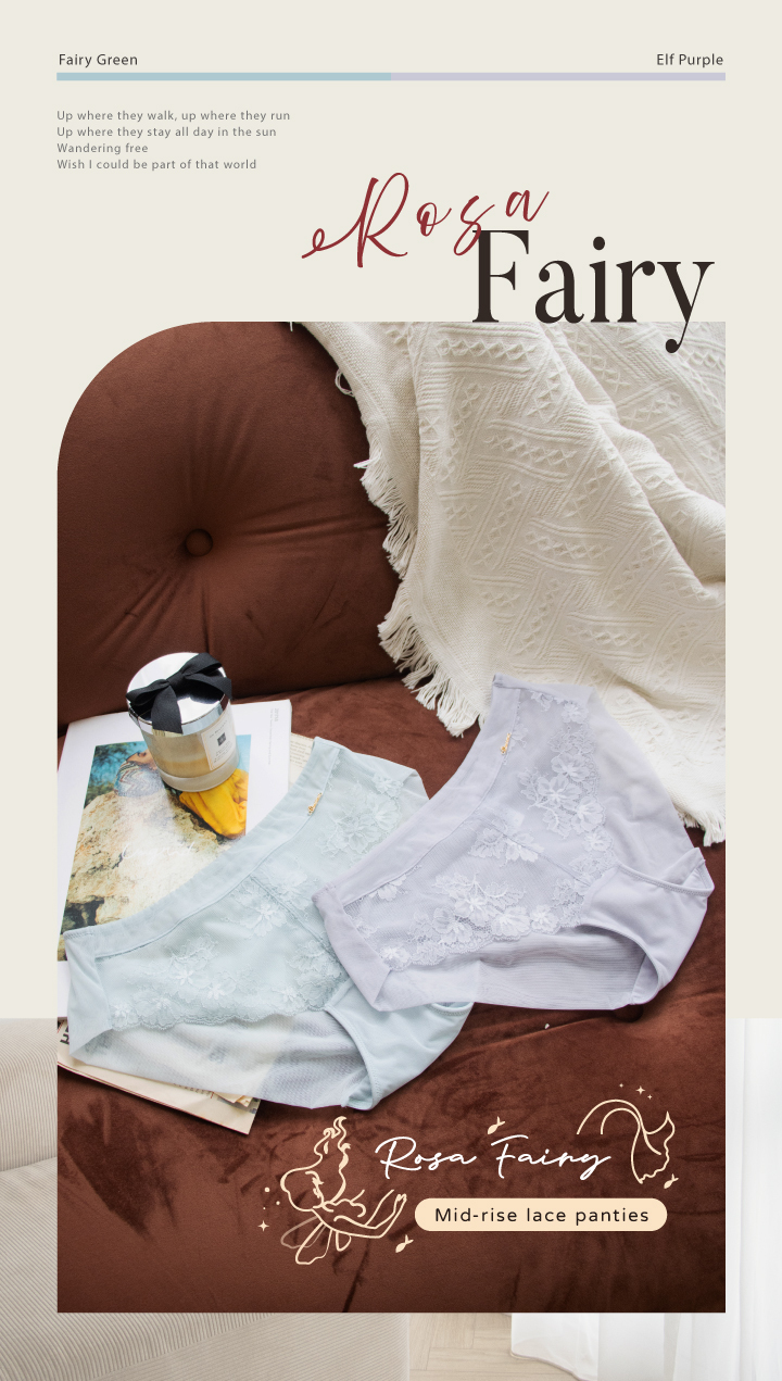 【Rosa Fairy】Mid-rise Full Coverage Lace Panty (2 colours)
