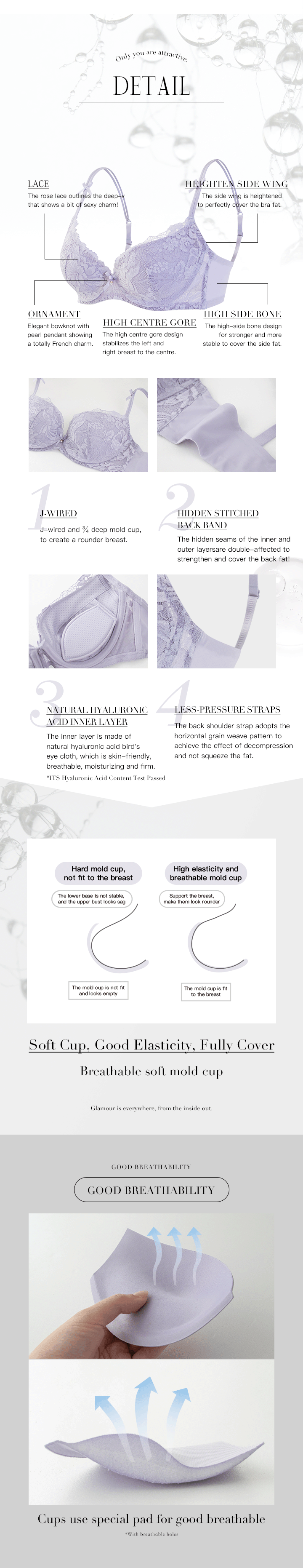 【Rose Lisa】Hyaluronic Acid J-wired Bra (Purple)