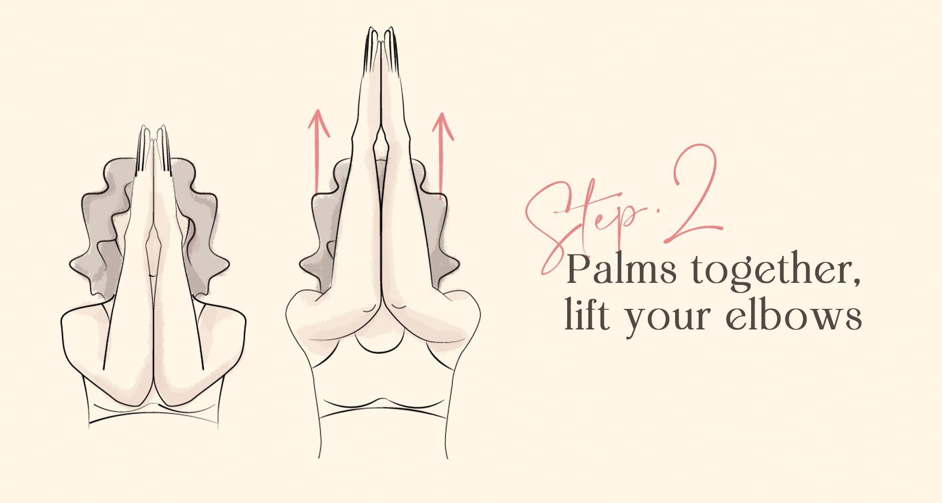 Press your palms against your elbows, forming a 90-degree angle, and pull upwards. Hold for a few seconds, then return to the original position.