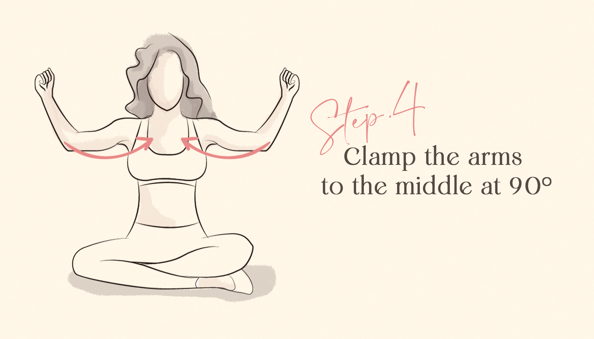 Perform the "Popeye" signature move. Keep your elbows to your shoulders and your body perpendicular, with your upper arms parallel to your torso. Then bring your hands together towards the centre, and return to the original position.