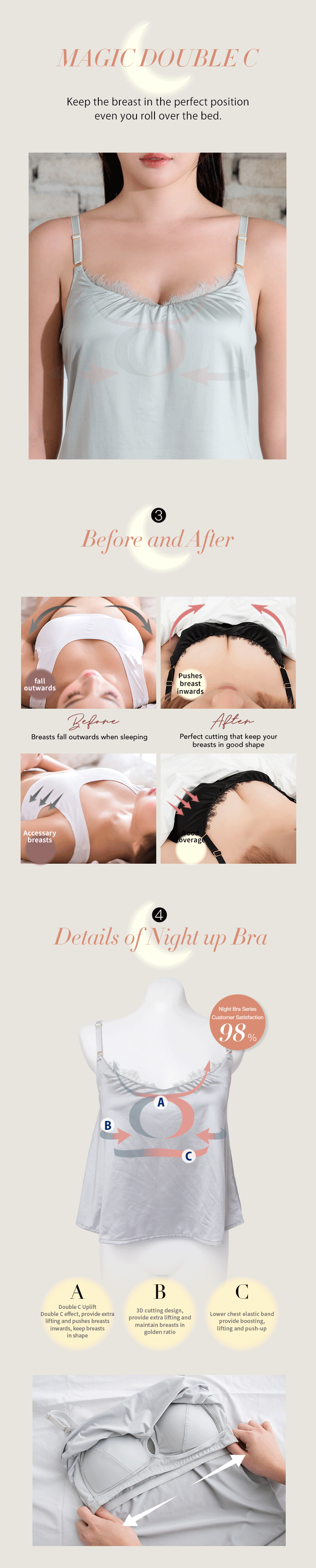Magic double-C lift—enhances shape and smooths underarm bulge