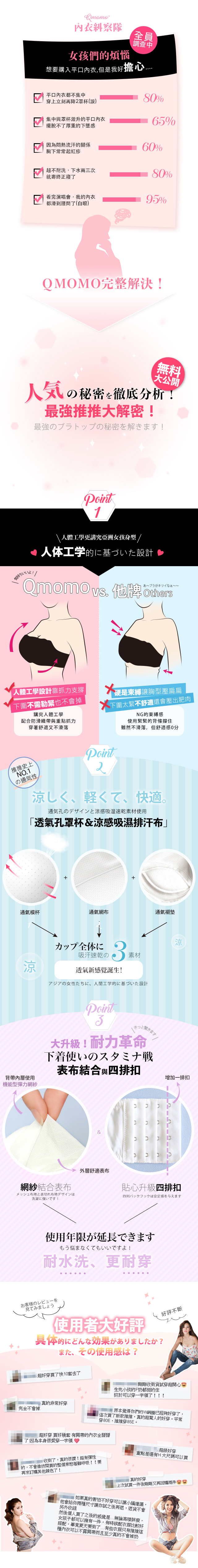 ●使用透气模杯 吸湿排汗乌眼布 透气Q衬垫。让胸部不再闷热