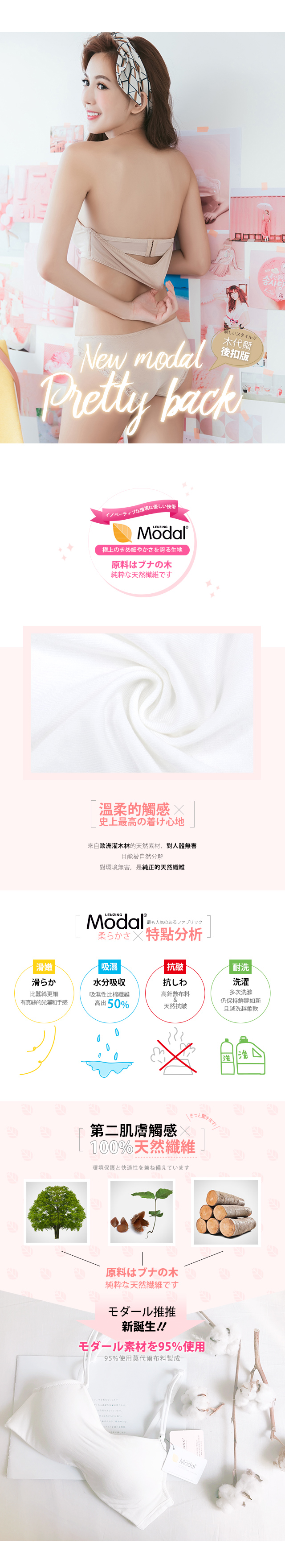 平口【包覆版 后扣】- 莫代尔无痕 平口推推 内衣(裸肤)