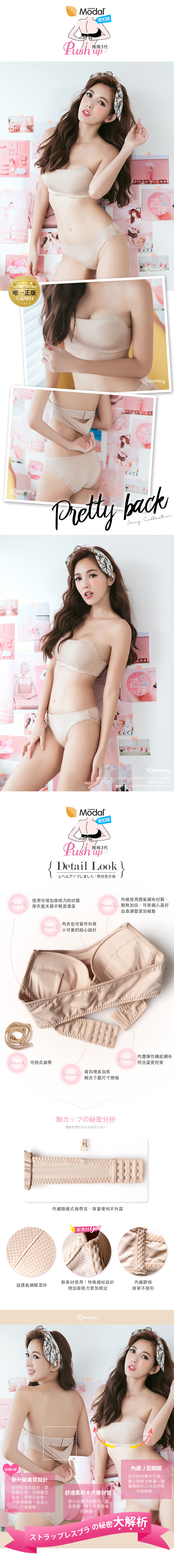 ●PUSH UP!罩杯本身具有厚度,另外Q衬垫厚度约1cm