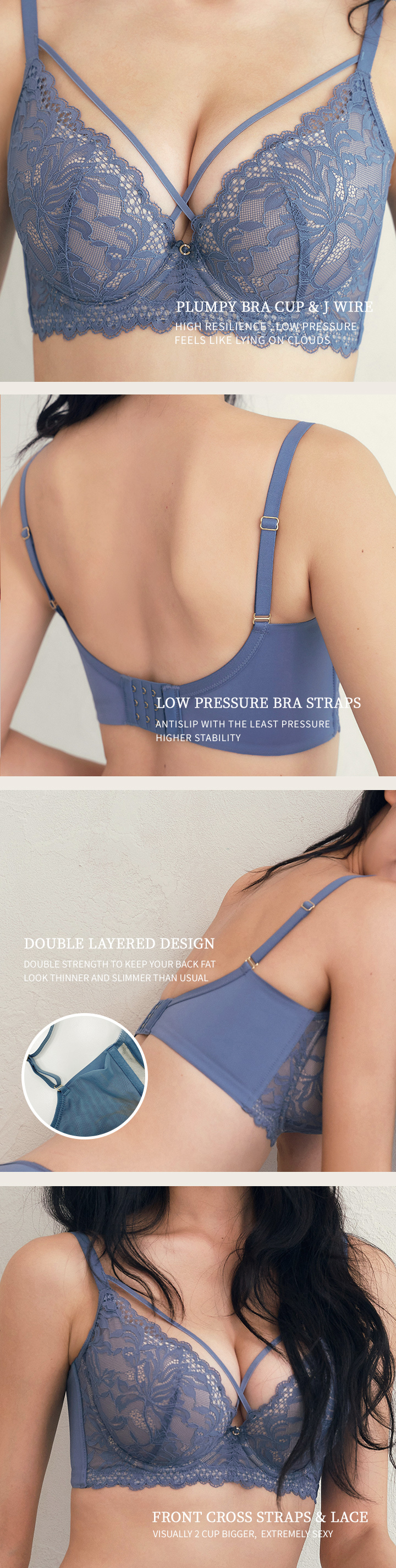 【Meitu+2Cup Sizes】 - Deep V Push-Up wired Bra (Blue)