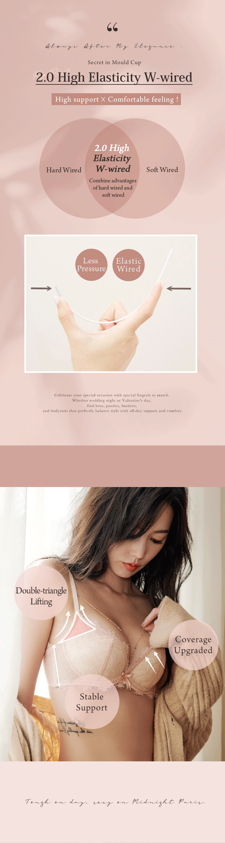 【Night In Bohemia】W-wired Chain Lace Bra (Smokey Pink)