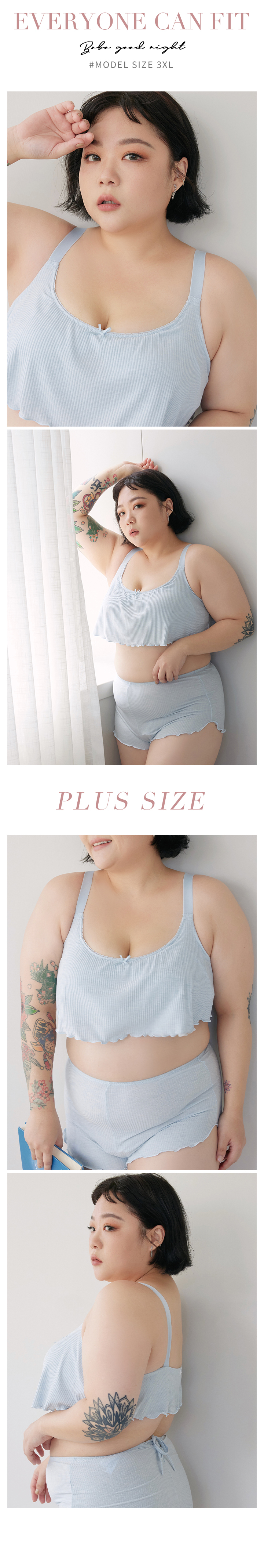 -【BOBO .Short Version Night Bra】 Double C Modal Ribbed Jersey Ruffle Hem Pyjamas Top (Light Sky Blue)