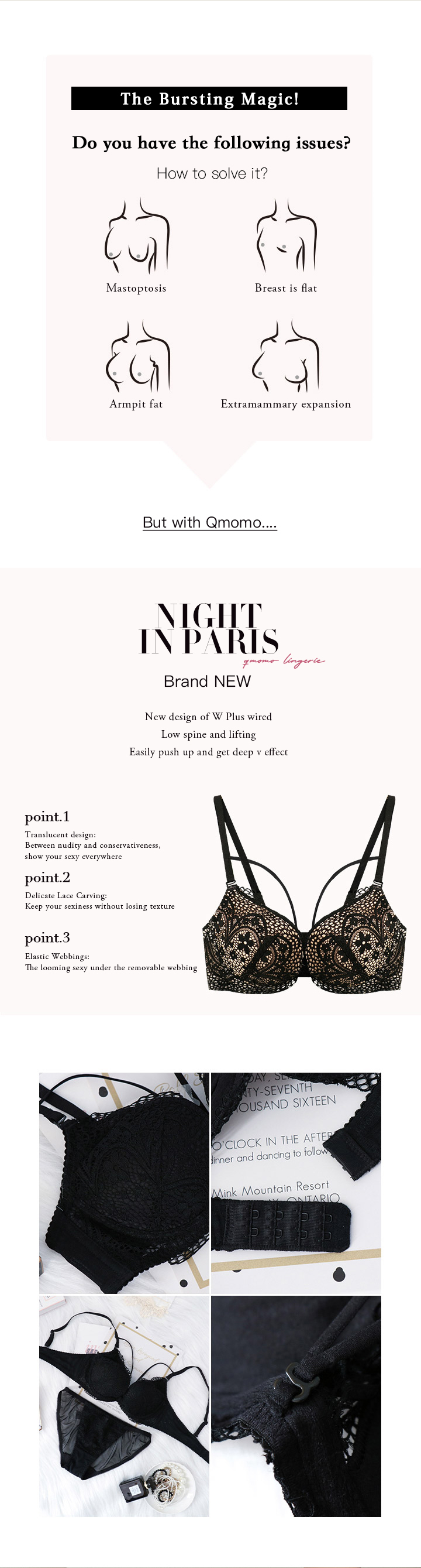Qmomo Night in Paris W-wired W Plus Concentrated Bra (Black)