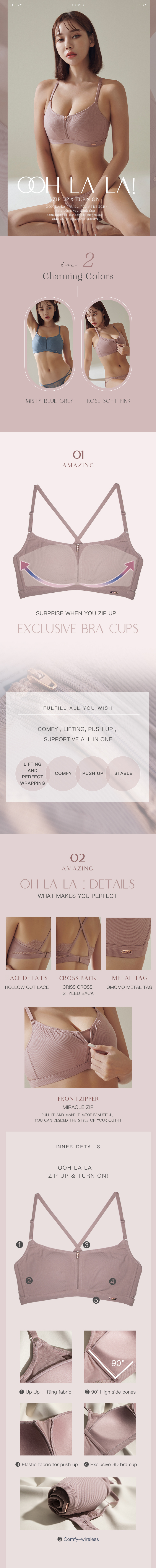 Qmomo【Miracle LaLa】Zip-up Bra (Rose Soft Pink)