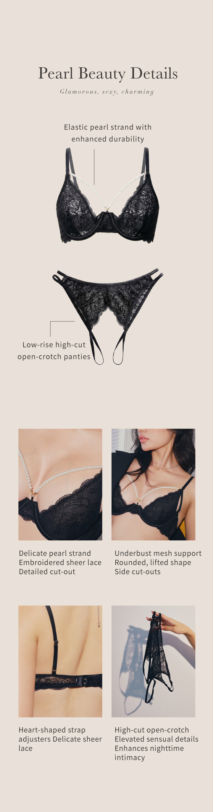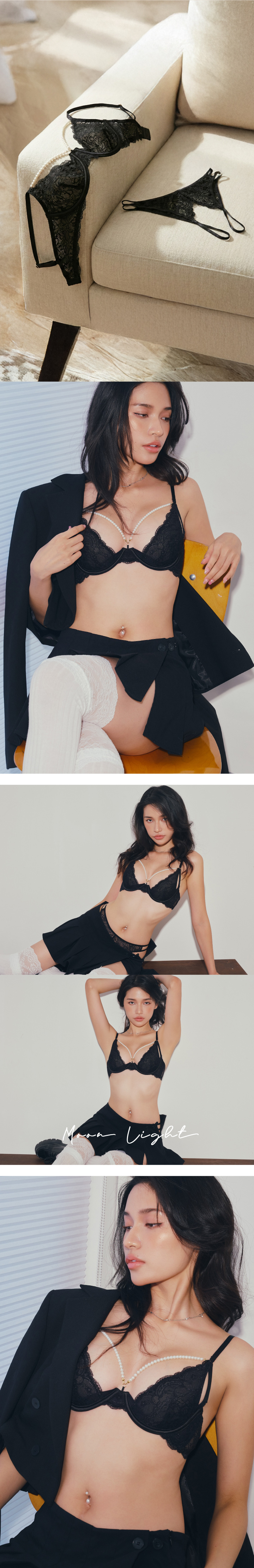 SET【Moonlight Beauty】Pearl Sheer Lace Sexy (Black)