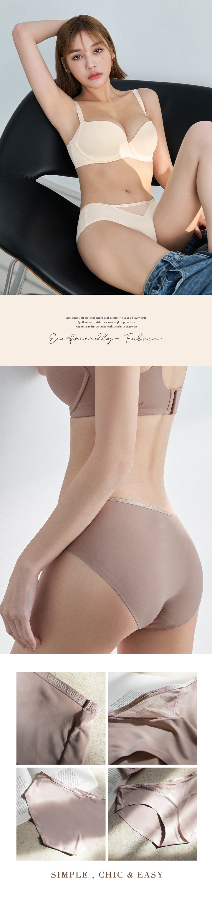裤腰呼应内衣风格,紧带时尚印字QMOMO CHIC CHIC,让你成为最优雅、别致的女孩