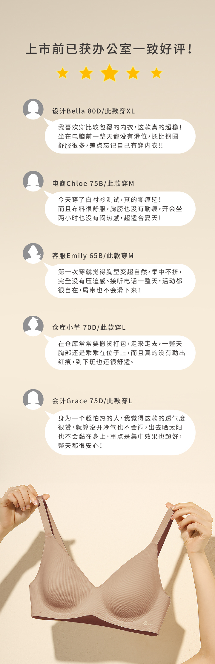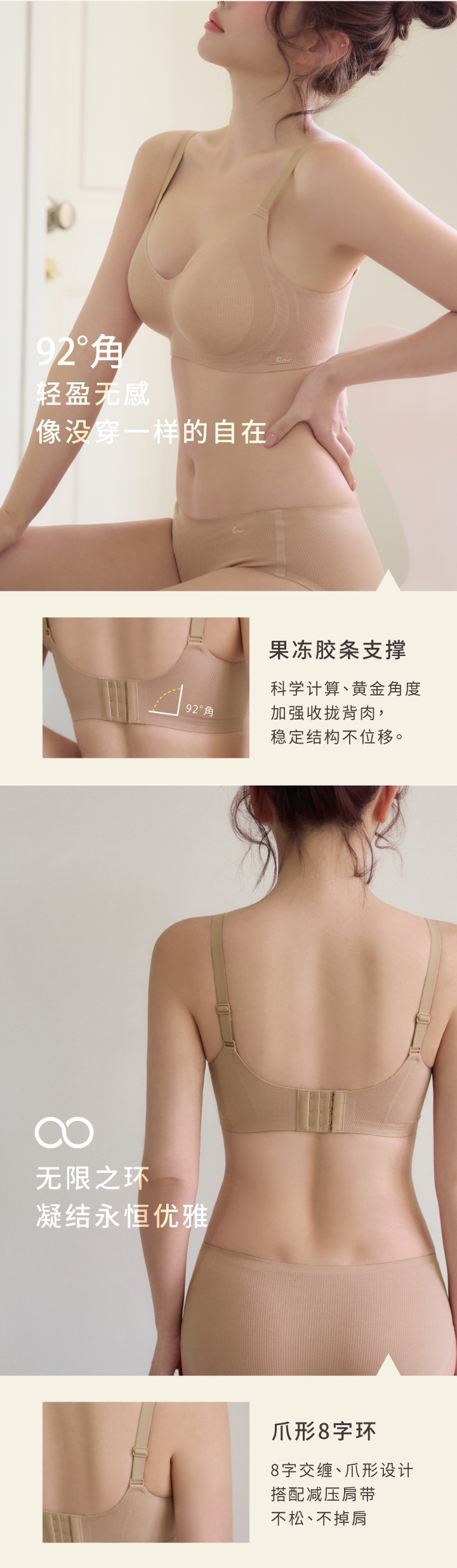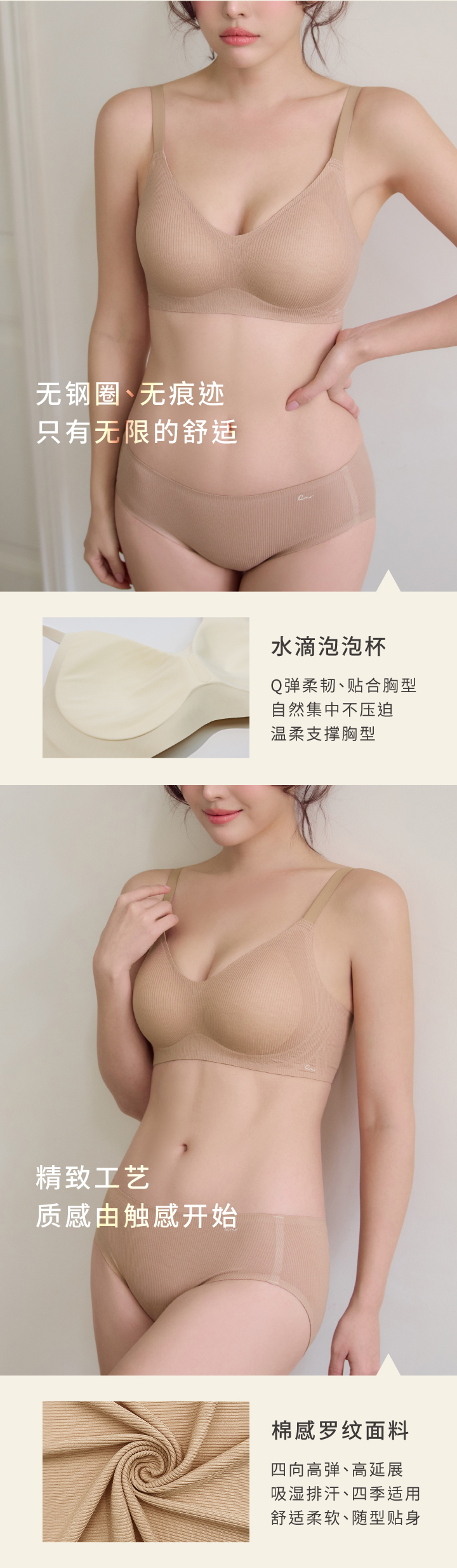全新Free cut Air系列款式,核心诉求让内衣与肌肤自然对话,精心打造贴近肌肤的自然裸肌系列,致力带给女性最真实的无压、无痕、无感、无负担。