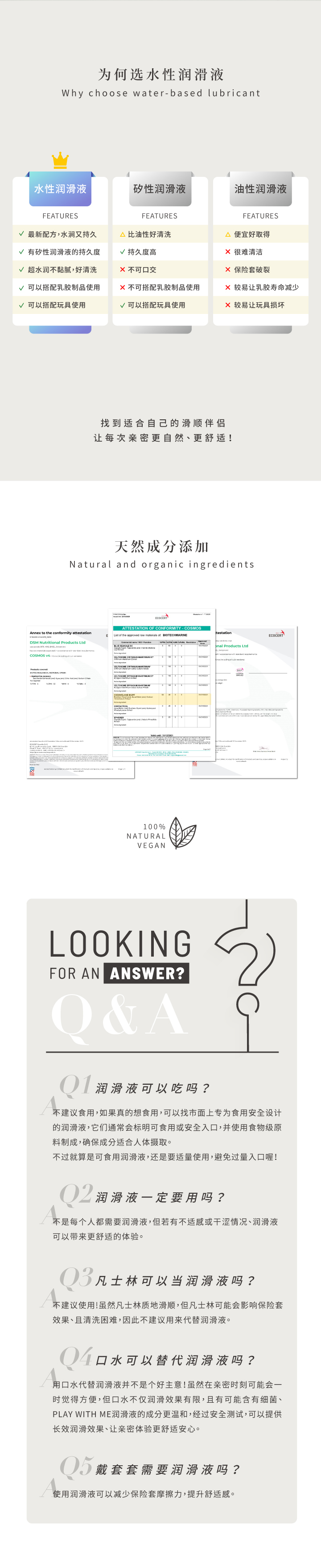 • 含油性润泽成分,可能降低乳胶安全套的耐受性与避孕效果,如需搭配安全套,建议选择非乳胶材质。