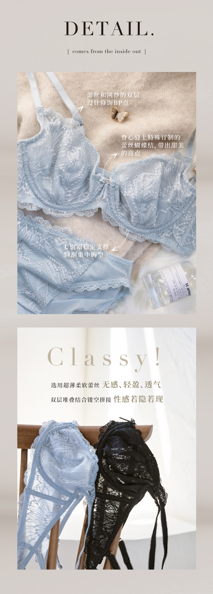 -選用超薄柔軟的緹花蕾絲,親膚、清透、無感,精緻度升級,