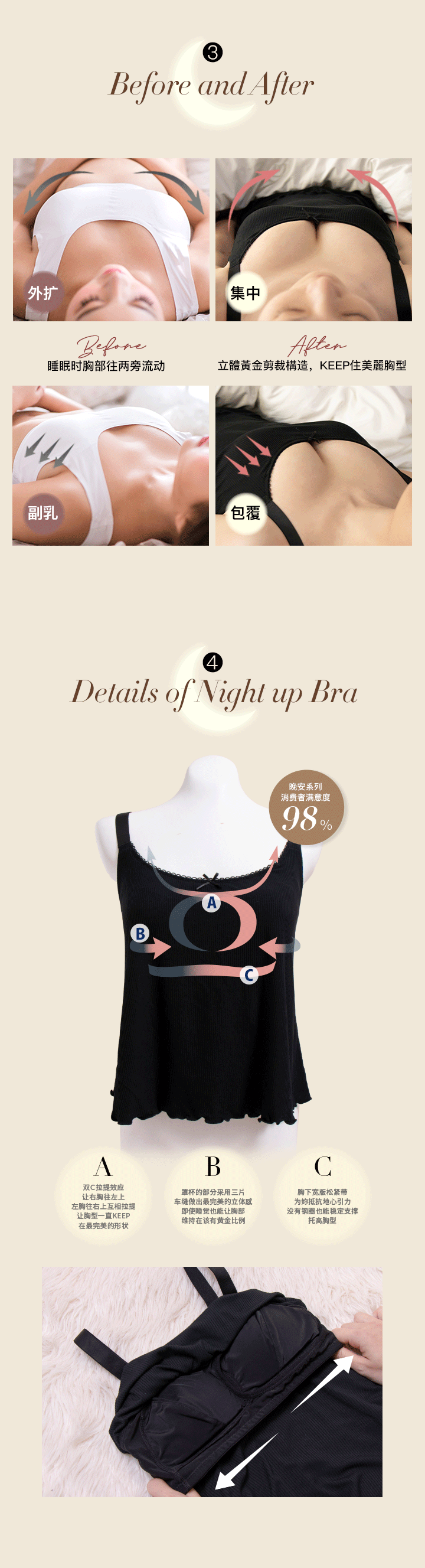 让左右边胸部互相拉提,怎么睡、怎么躺,胸部都一直KEEP在最完美的形状!