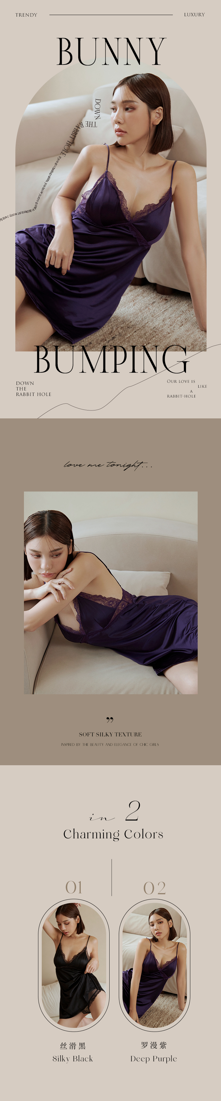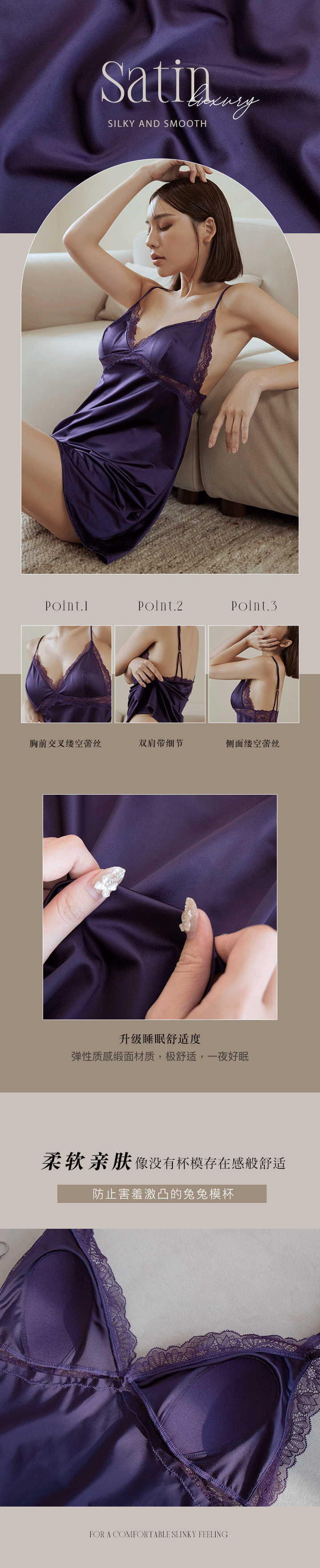 【小兔乱乱撞】弹性缎面深V领洋装睡衣 (罗漫紫)