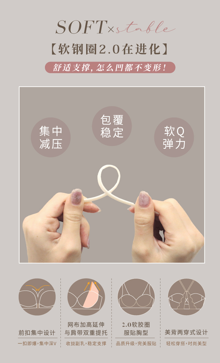 美背两穿式设计,使用可钩式0字环,随心改变妳的穿着!