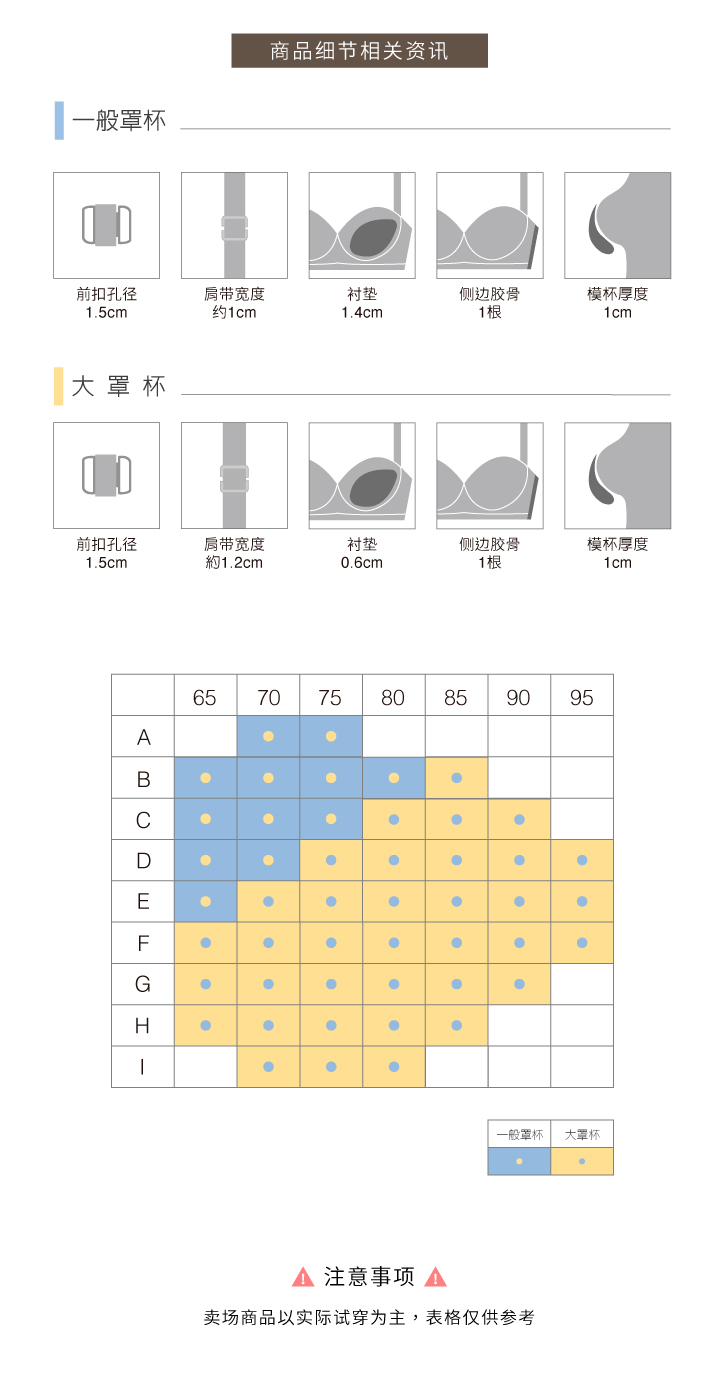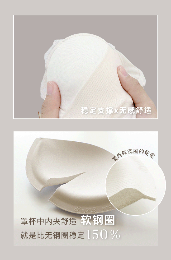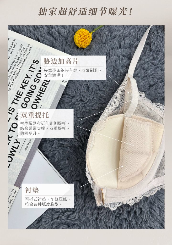 低嵴心中脇边版型,让胸型稳定包复又美型。