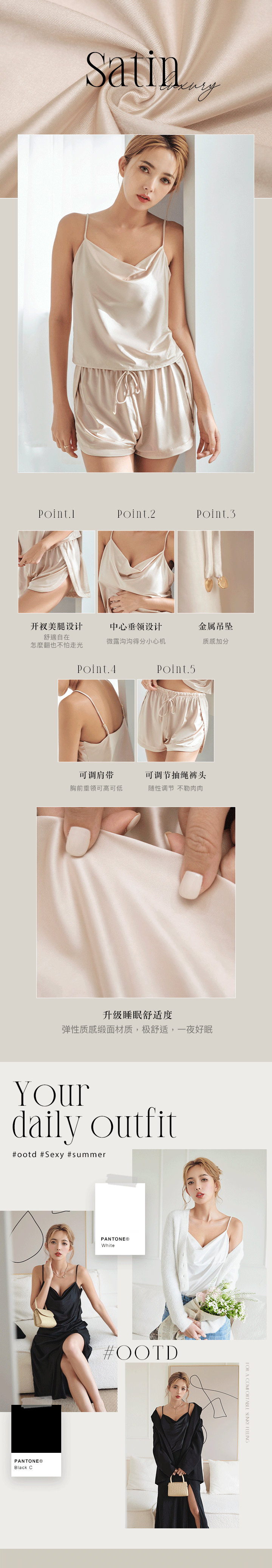 【梦境森林】缎面弹性垂领睡衣-上衣 (星空分子)