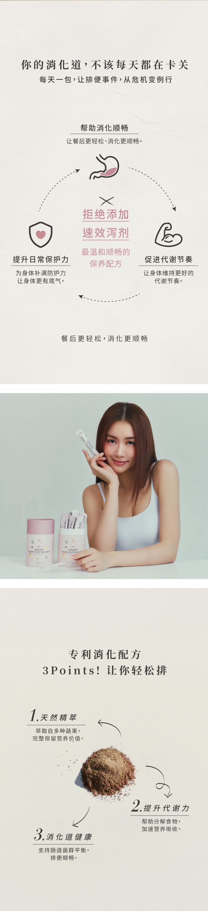 - 添加诺丽果萃取,促进肠道蠕动、帮助消化