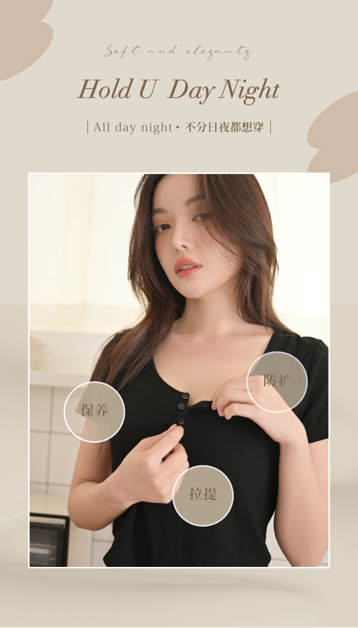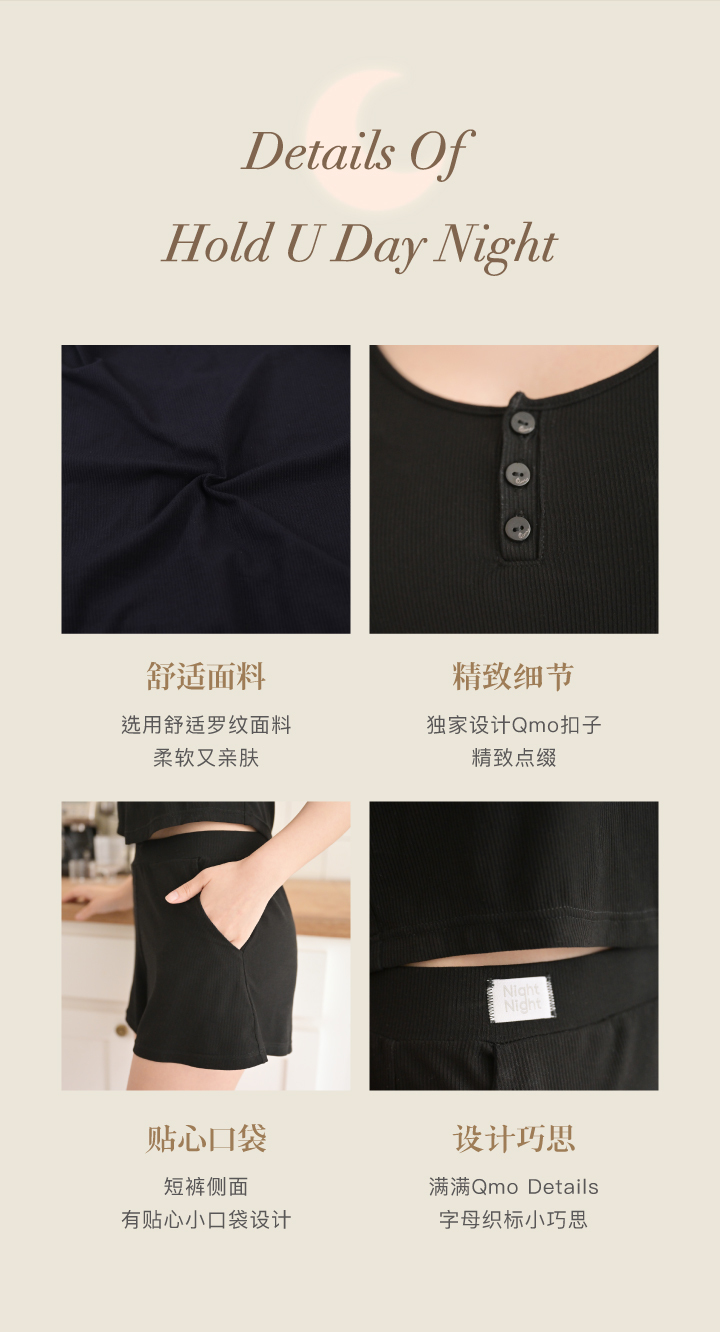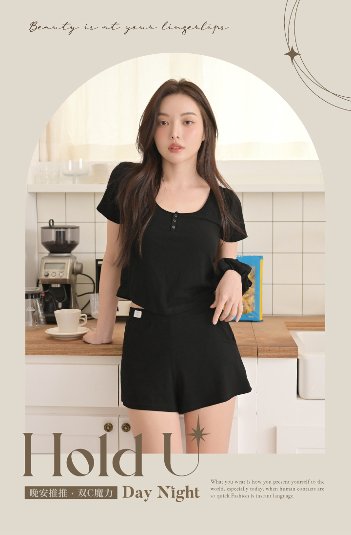 【Hold U Day Night】晚安推推双C短袖U领睡眠内衣(Oreo黑)