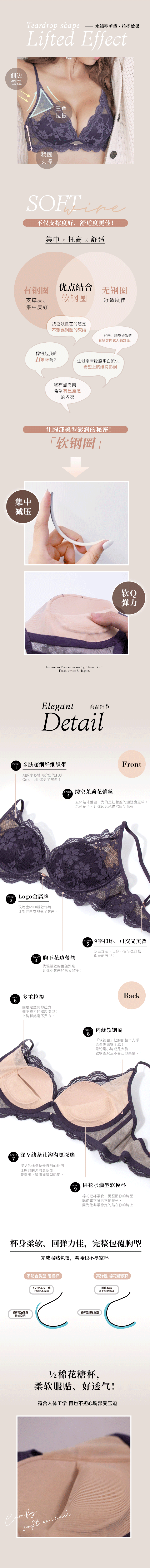 一体成型的舒适软钢圈模杯,减压又舒服