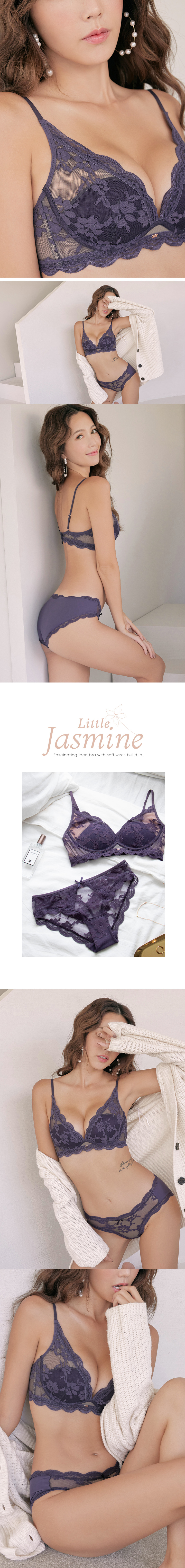 以大面积透肤感的茉莉花型蕾丝为基底