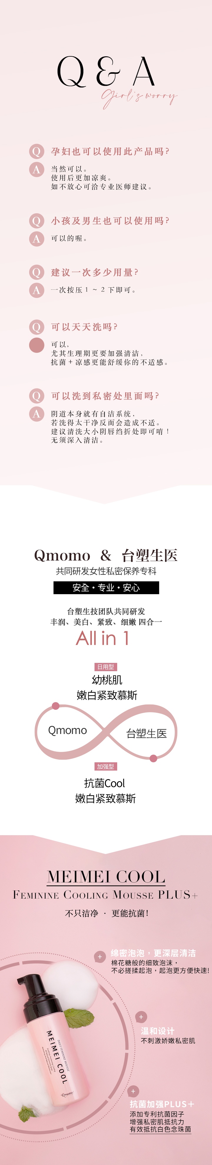 Qmomo【Mei Mei Cool】抗菌凉感幼桃肌嫩白紧致慕斯 PLUS+