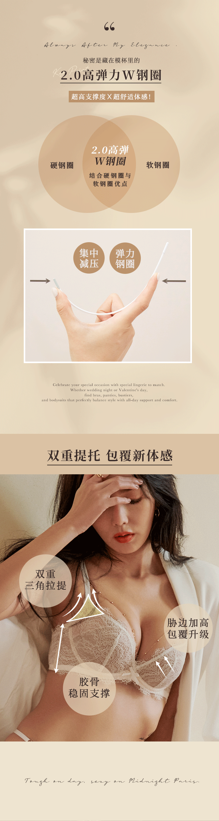 【遇见波希】W钢圈坠链睫毛蕾丝内衣 (迷雾白)