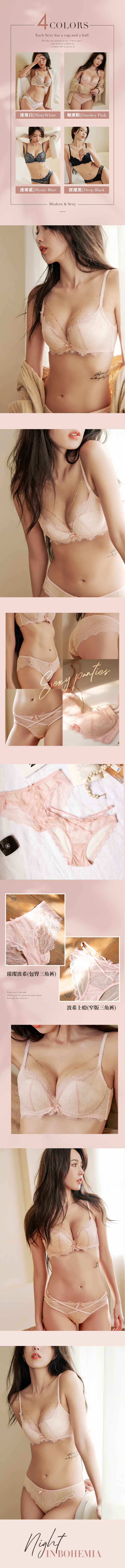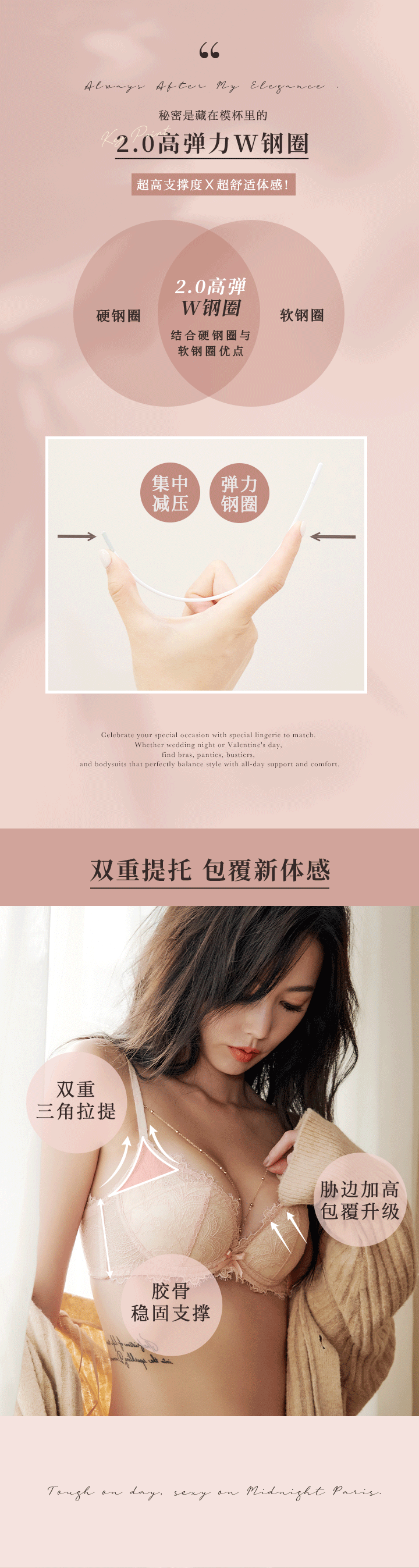 【遇见波希】W钢圈坠链睫毛蕾丝内衣 (烟熏粉)