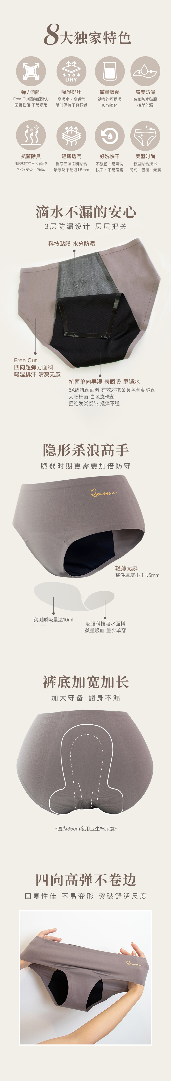 Qmomo独家研发生理裤,360°包覆屁屁,穿著一整天,全天贴身守护。