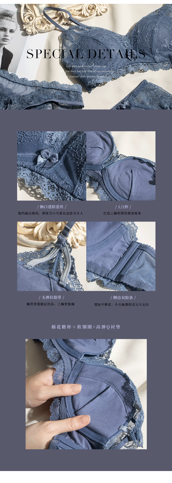 软胶圈/软钢圈棉花杯舒适內衣(灰藍)