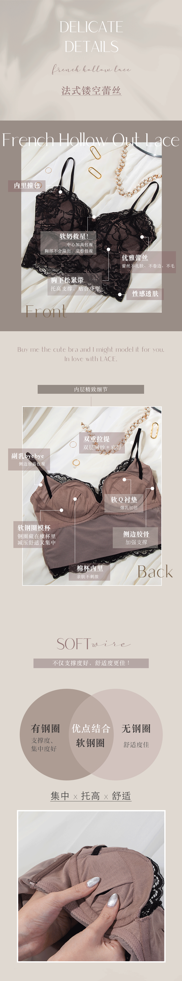 长版乐芬妮软胶圈软钢圈蕾丝Bra Top (大人系暖黑)