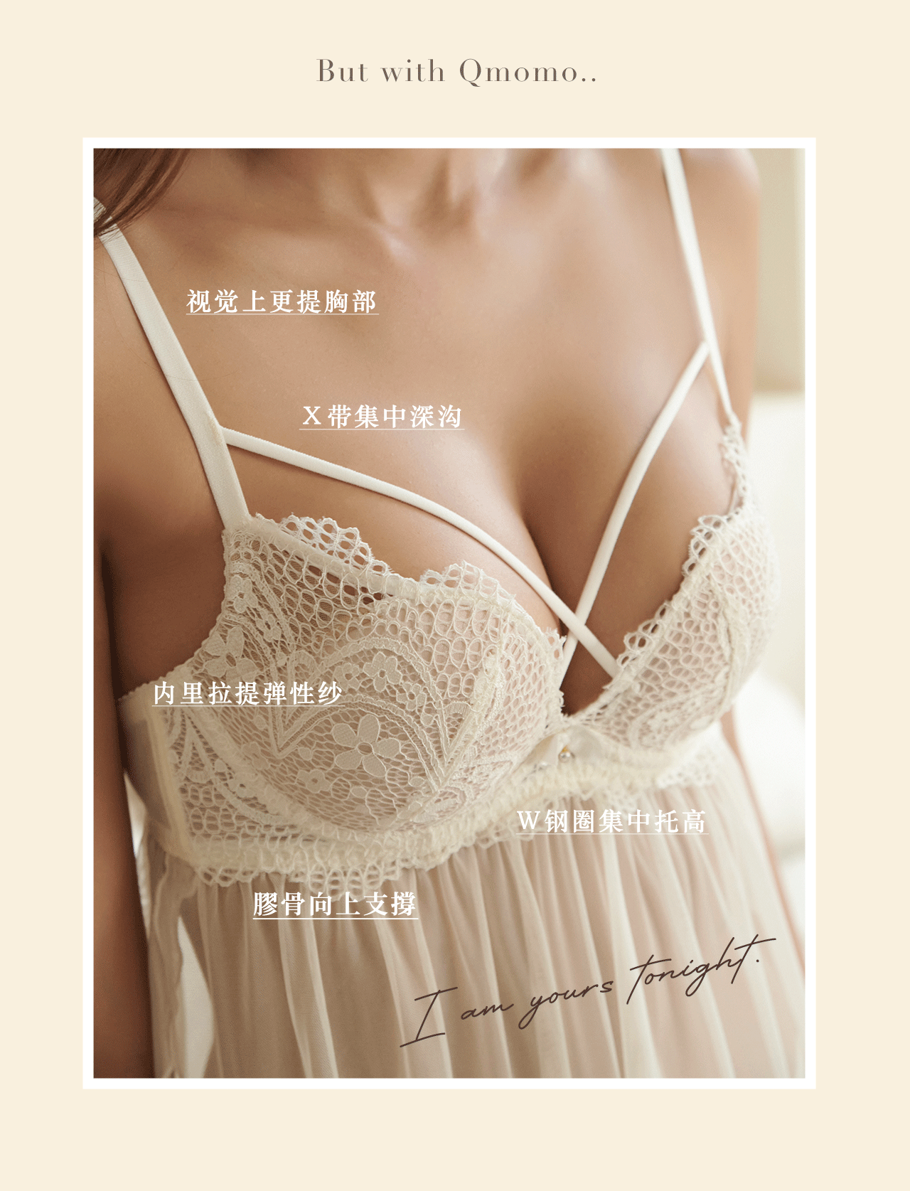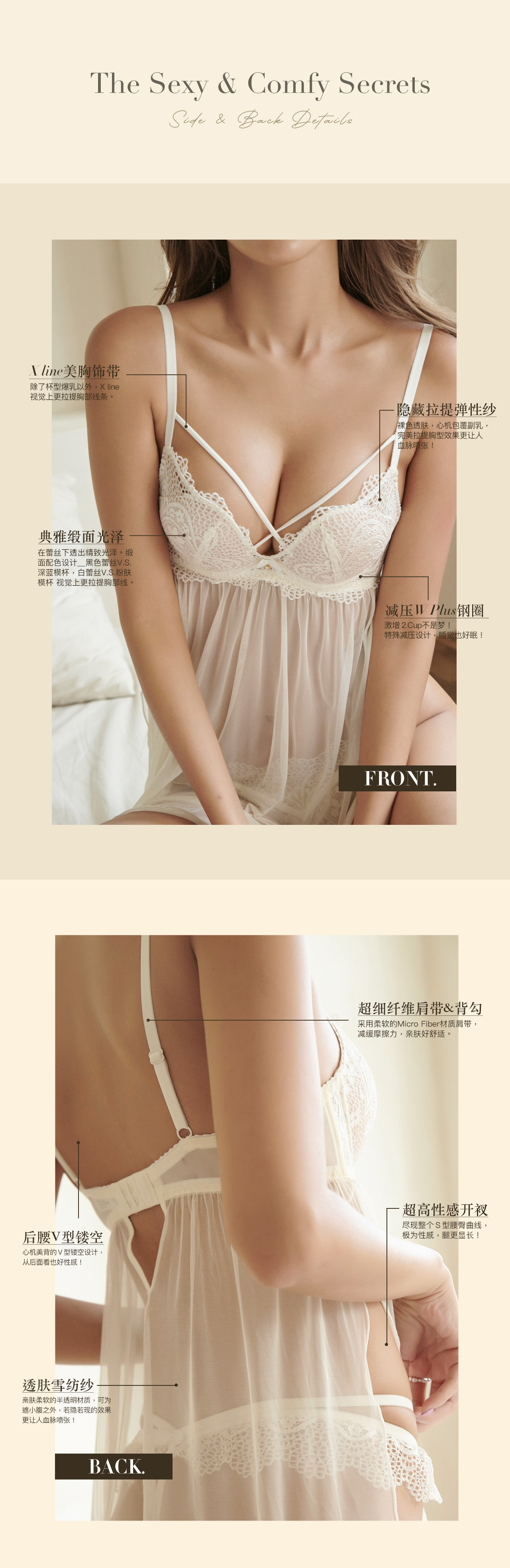 坚持一定要性感的原则,胸前X型交叉饰带,使胸型更集中、丰满!