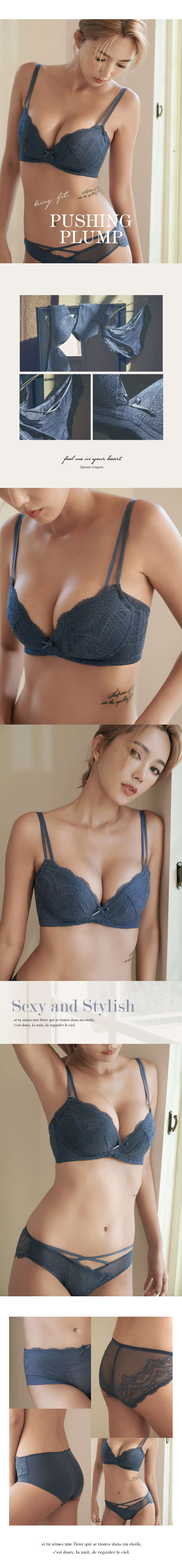 Qmomo【推肉肉 -3"】 减压W深沟棉杯超包覆内衣(蓝灰)
