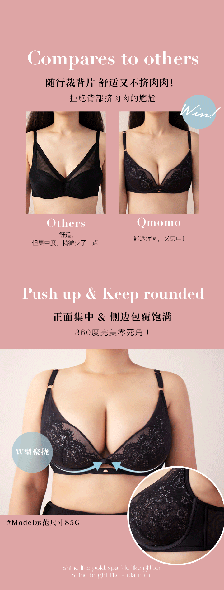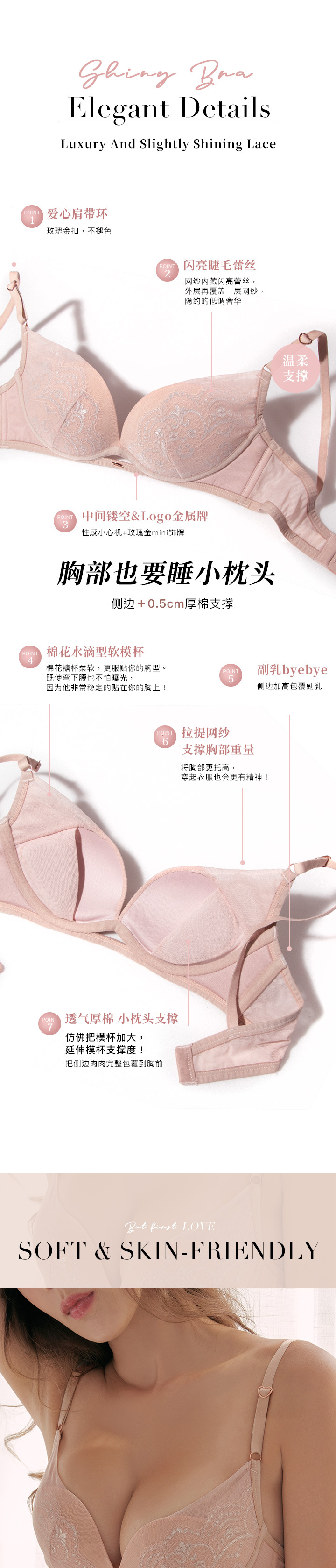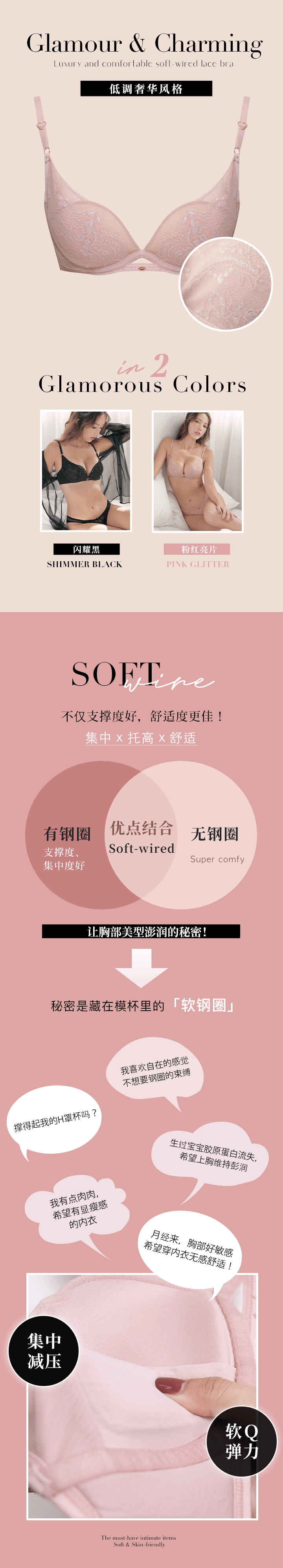 Qmomo【闪闪惹人爱】软胶圈/软钢圈棉花杯舒适内衣 (粉红亮片)