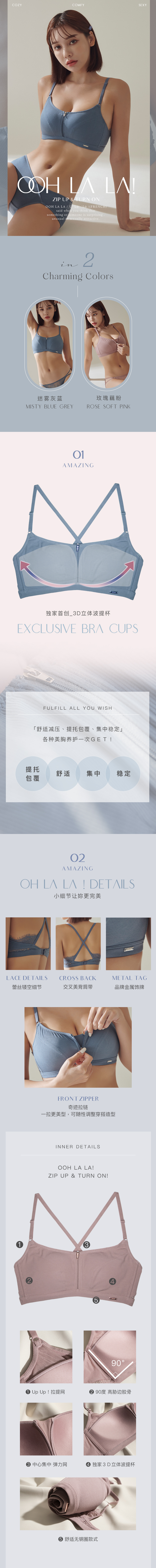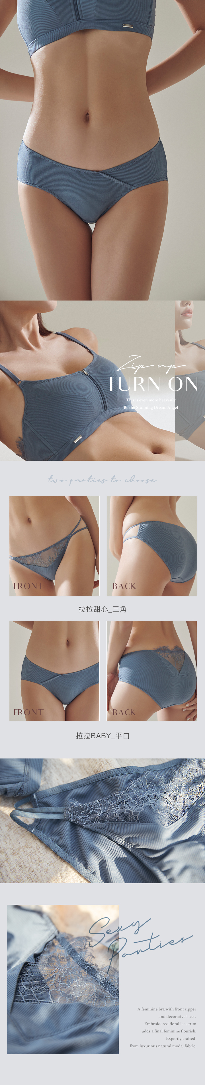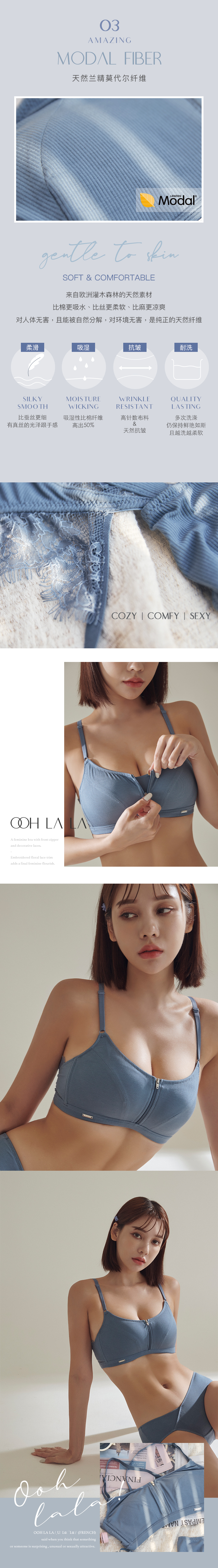 莫代尔前拉链无钢圈美背内衣(迷雾灰蓝)