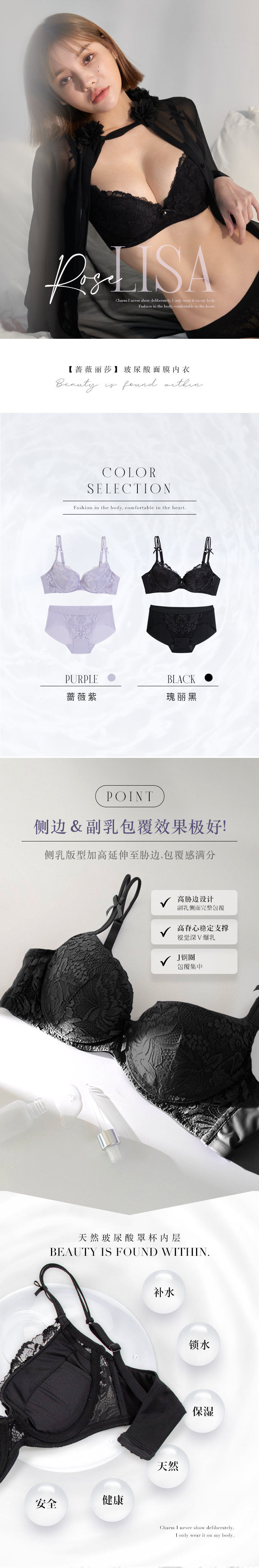 【蔷薇丽莎】玻尿酸面膜J钢圈内衣 (瑰丽黑)