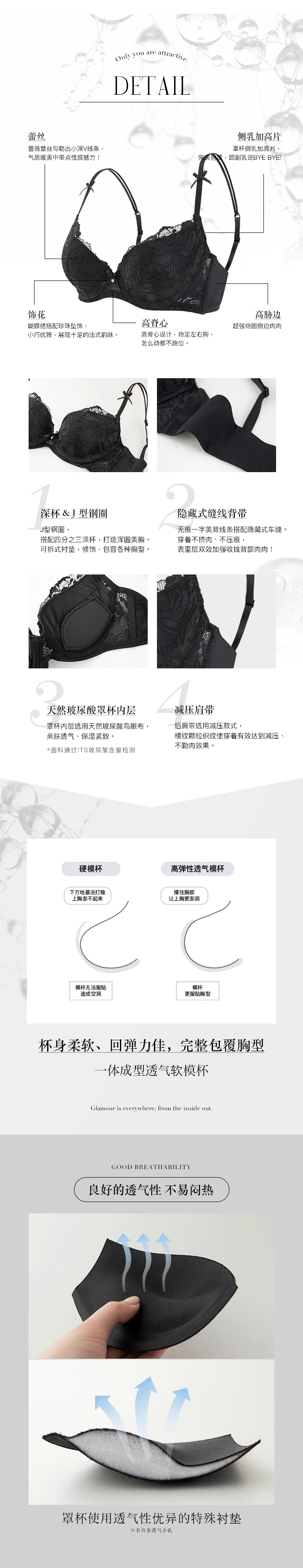 J型钢圈,搭配四分之三深杯,打造浑圆美胸